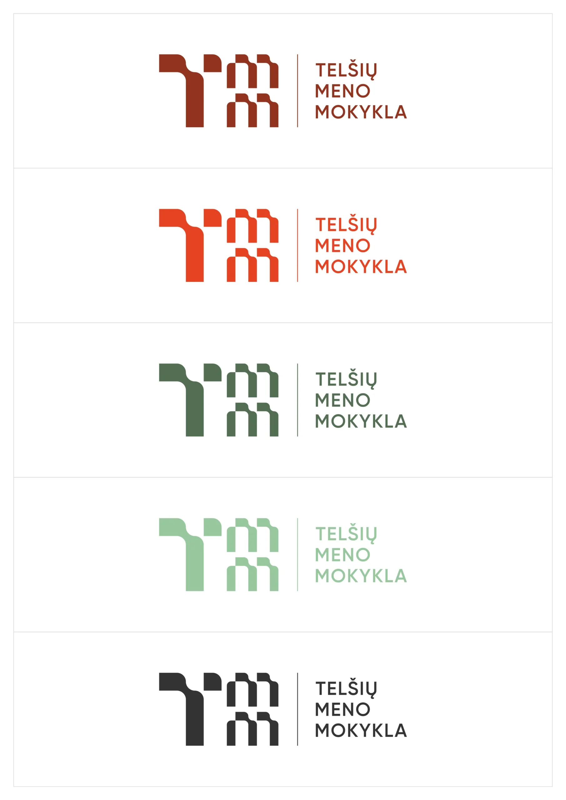 Telšių meno mokyklos stiliaus vadovas. Galite atsisiųsti visus lapus pdf dokumente arba atskirus lapus png formatu supakuotus zip archyve. Stiliaus vadovas Logotipai png formatu