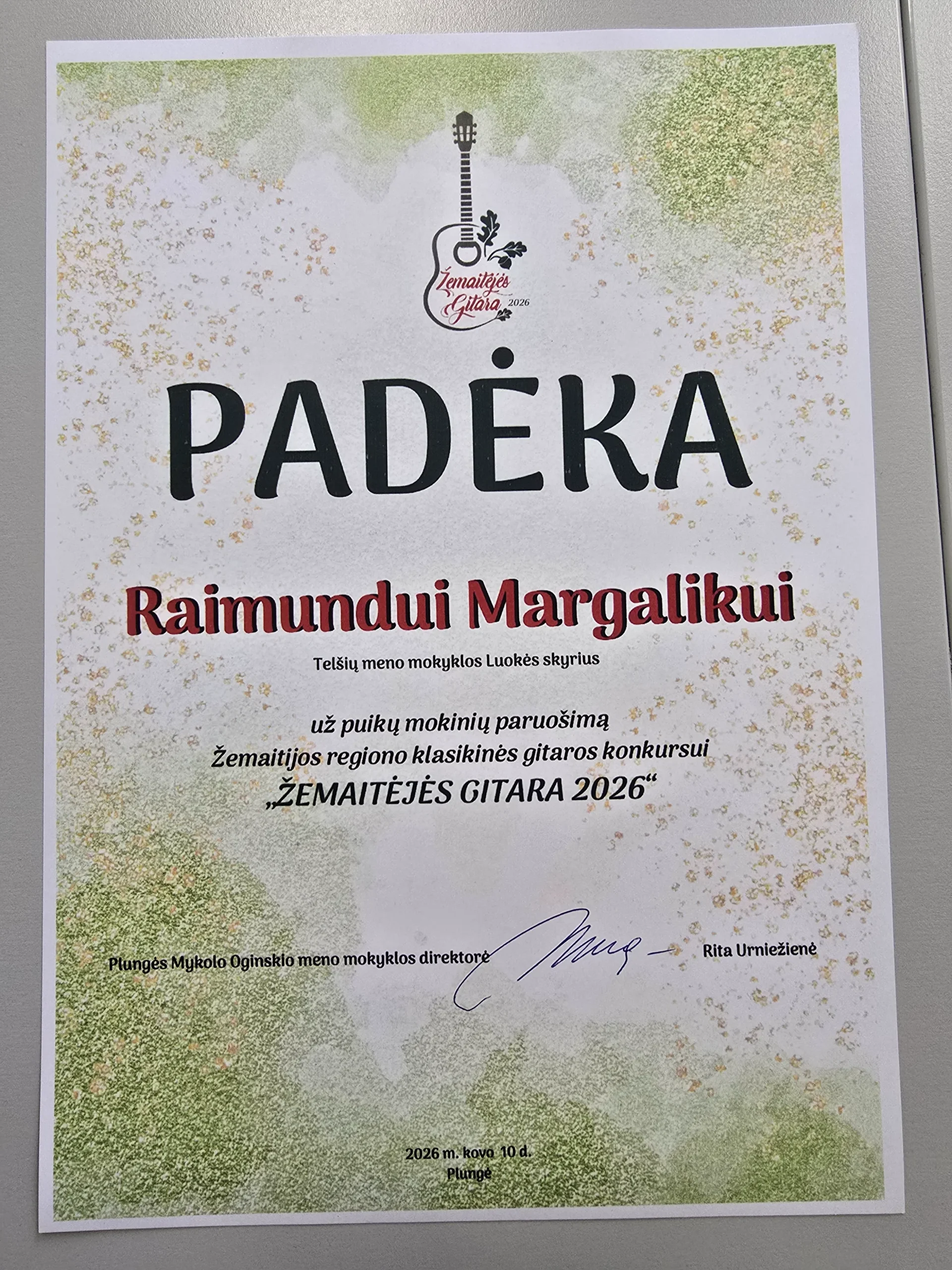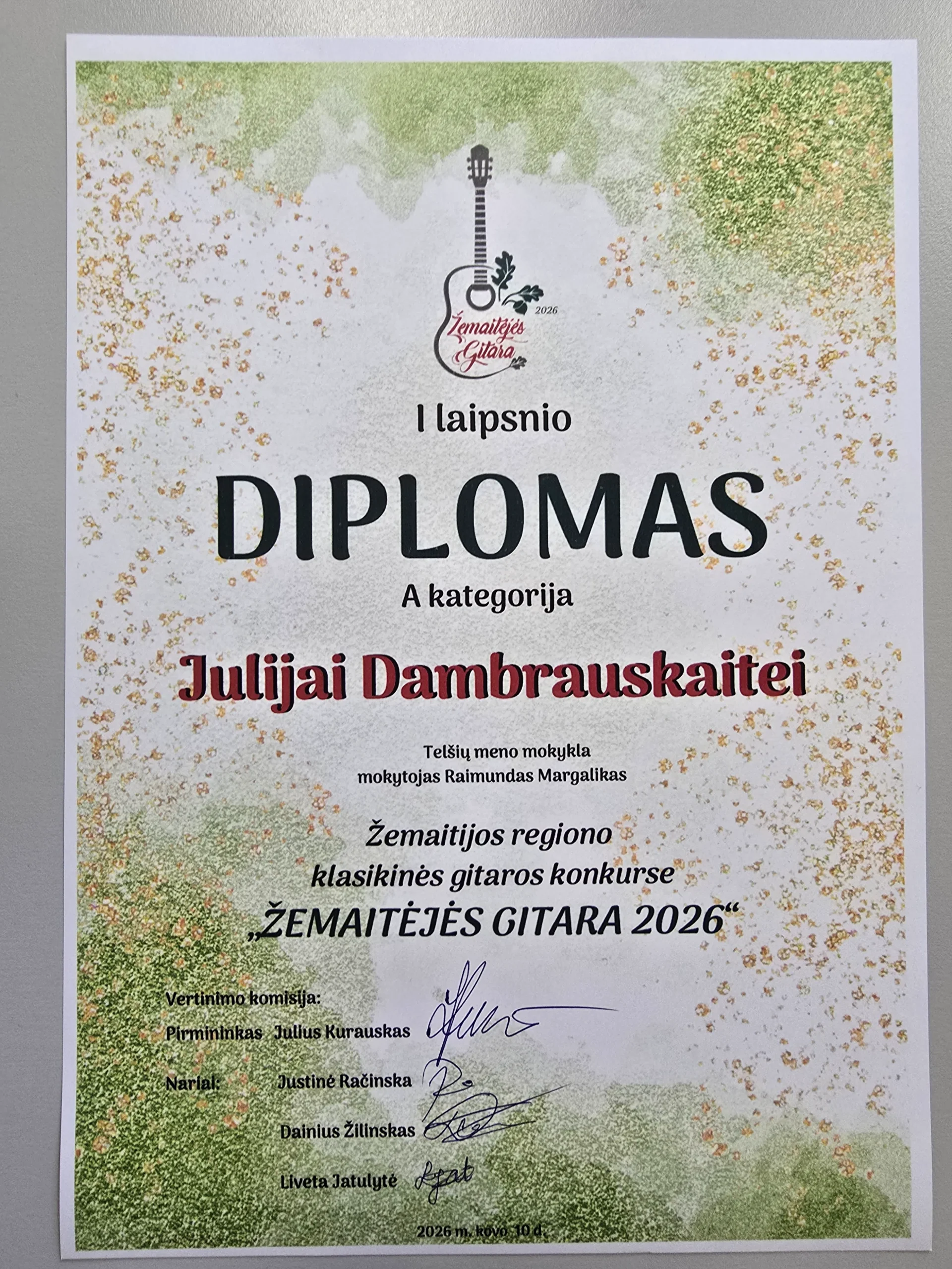 Žemaitijos regiono klasikinės gitaros konkurse „Žemaitėjės gitara 2026“: